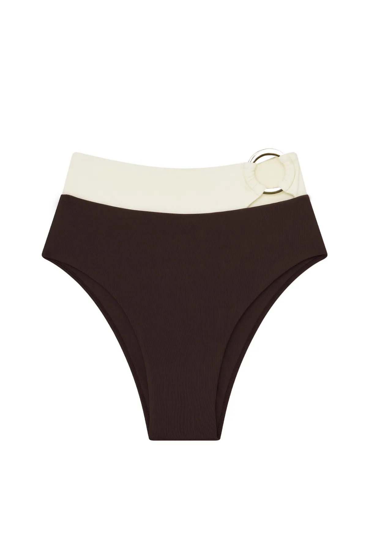 The Costa Rica Bottom offers the perfect balance of classic lines and thoughtful details. With full coverage and a high-waisted fit, it smooths and flatters in all the right places. A statement gold ring detail at the front adds just the right amount of shine.