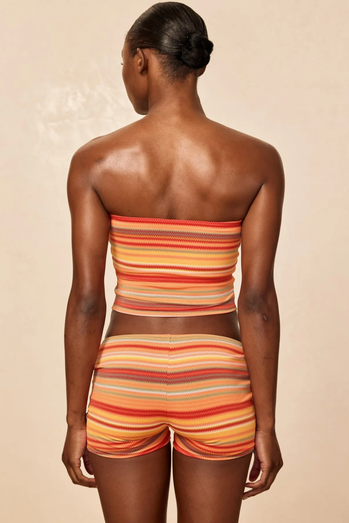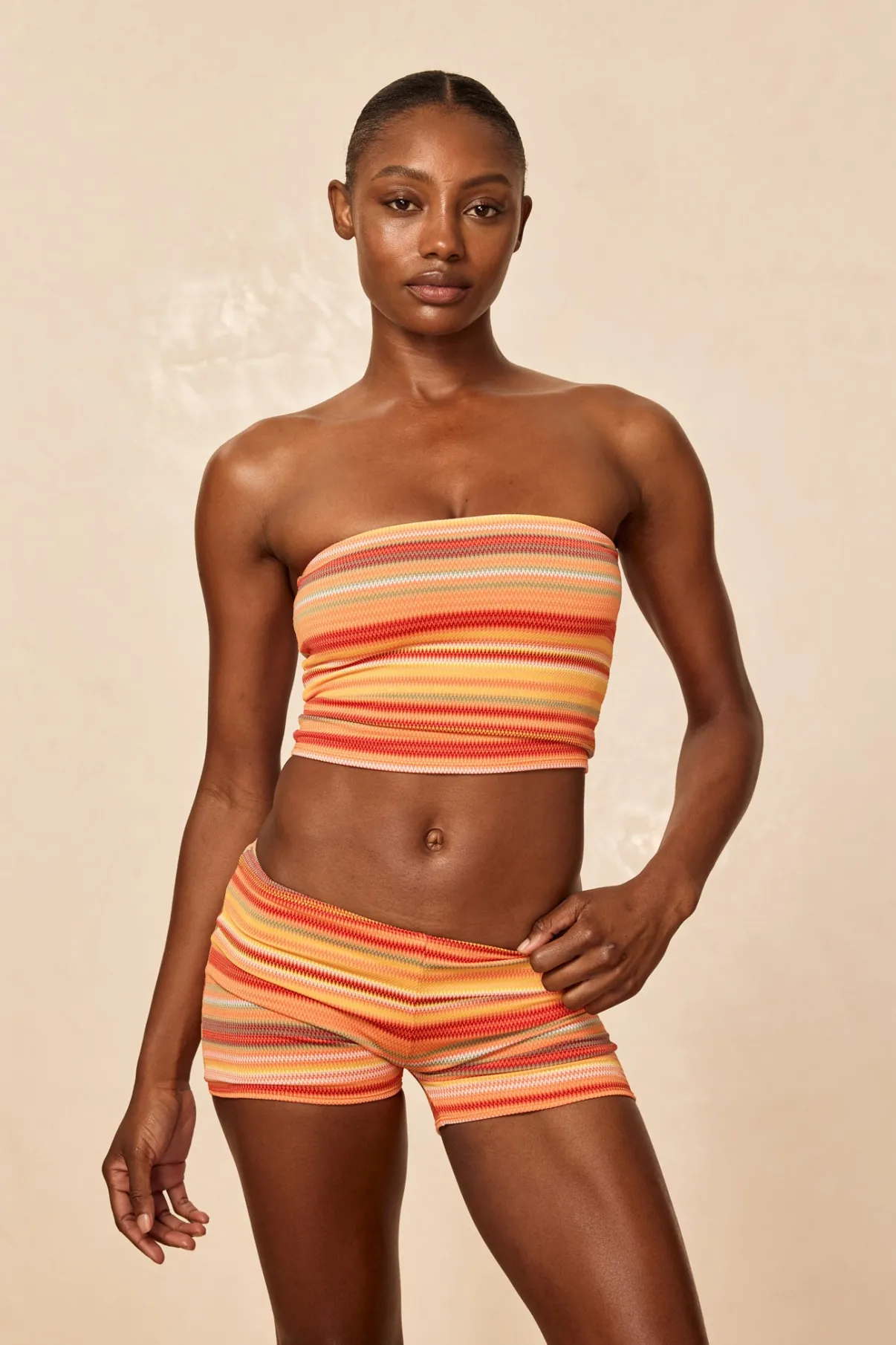 For a hot summer day, slip into our Laguna Top. Made with summers trendy print fabric, this tube top has the added supportive of shelf bra and silicon gripper tape to effortlessly pair with everything and anything.