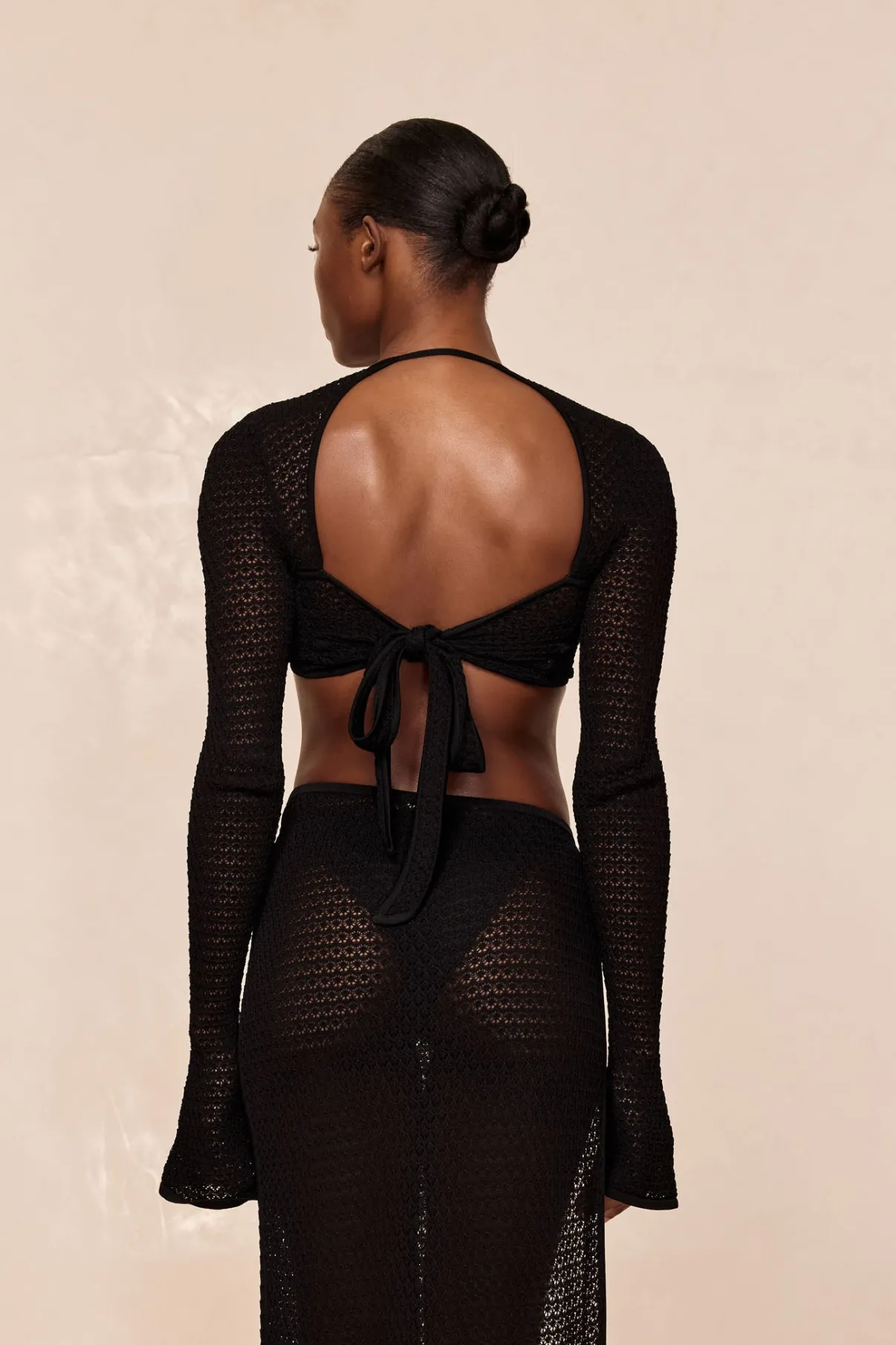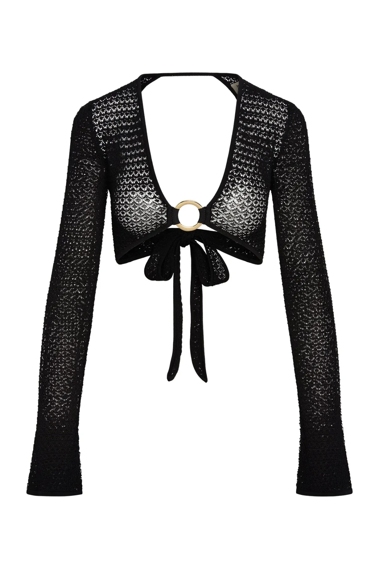 There’s nothing better than a chic top as your go-to summer staple. Designed in our soft lace crochet, the Montego Crop Top strikes the perfect balance of chic and flirty with its long sleeves and eye-catching gold center-front ring. An adjustable back tie closure ensures the perfect fit with every wear.