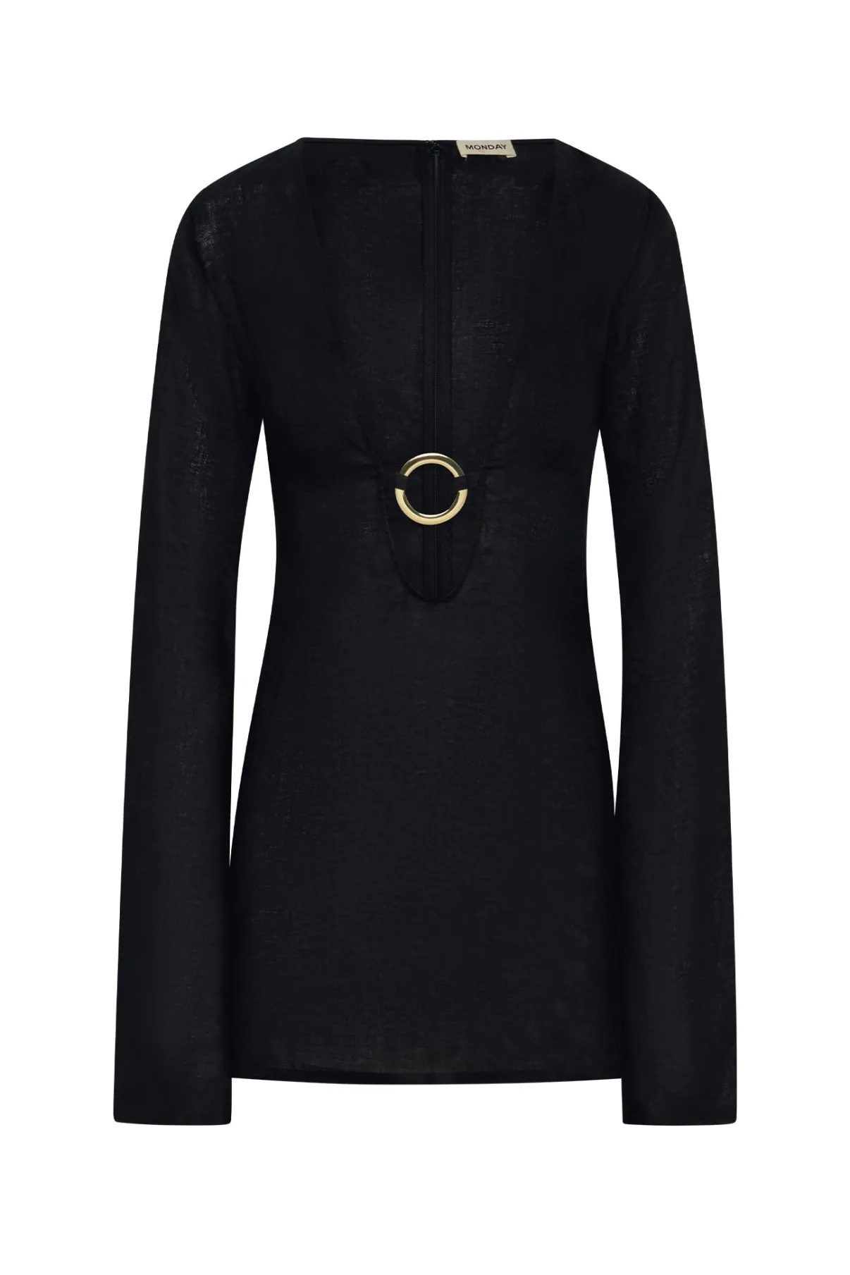 Plunging neckline w/ center front gold ring detail