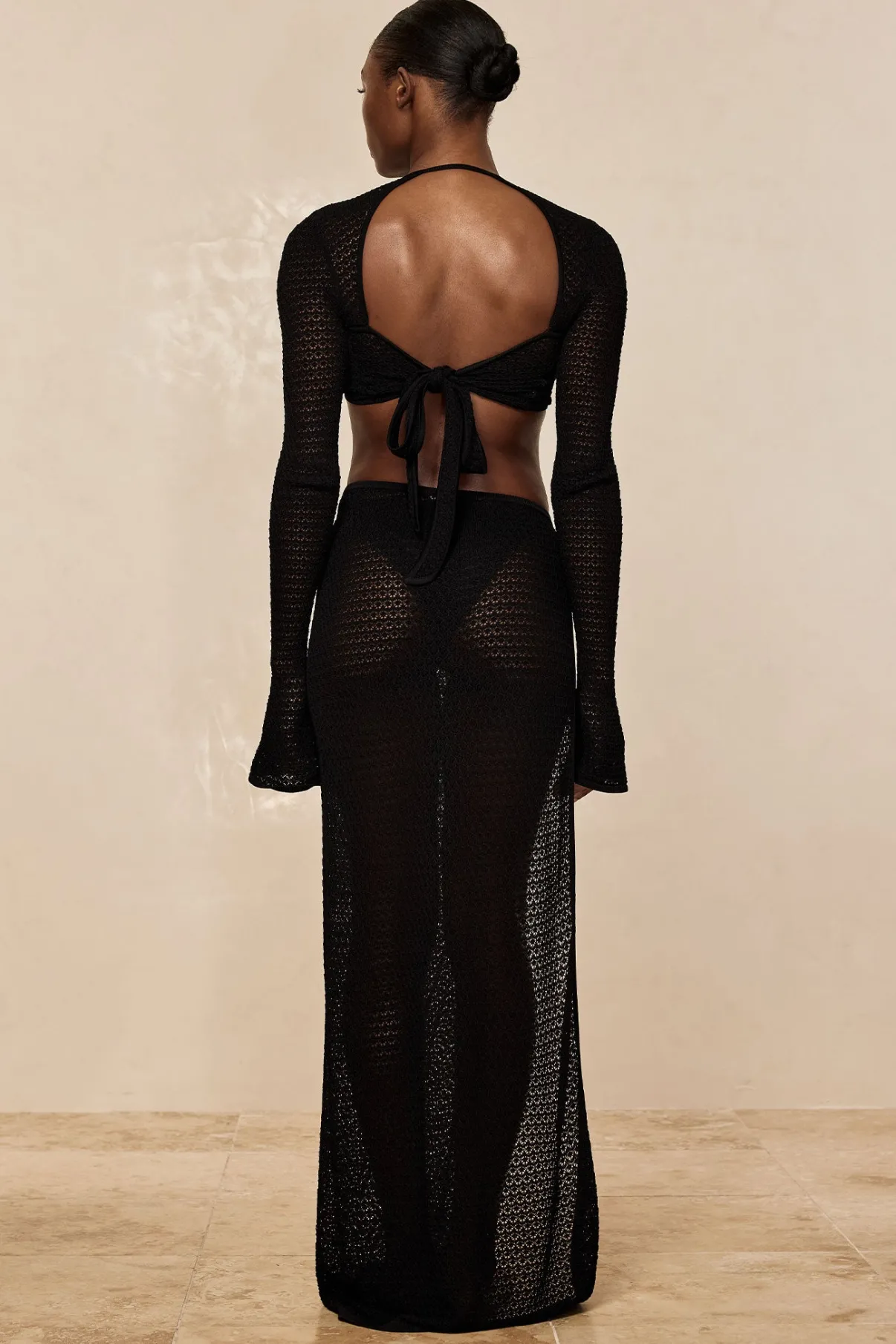 Amina is 5’8” and has a 33.5-inch hip and is wearing a size S.