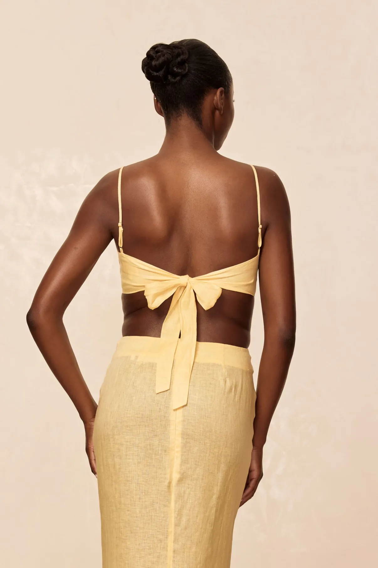 We designed the San Diego Top to be a wardrobe essential through the warmer months ahead. Made to effortlessly pair with countless options, this cropped linen tank is complete with adjustable shoulder straps and a back tie closure. Complete this chic look with the Belize Pant or the Fontelina Skirt.