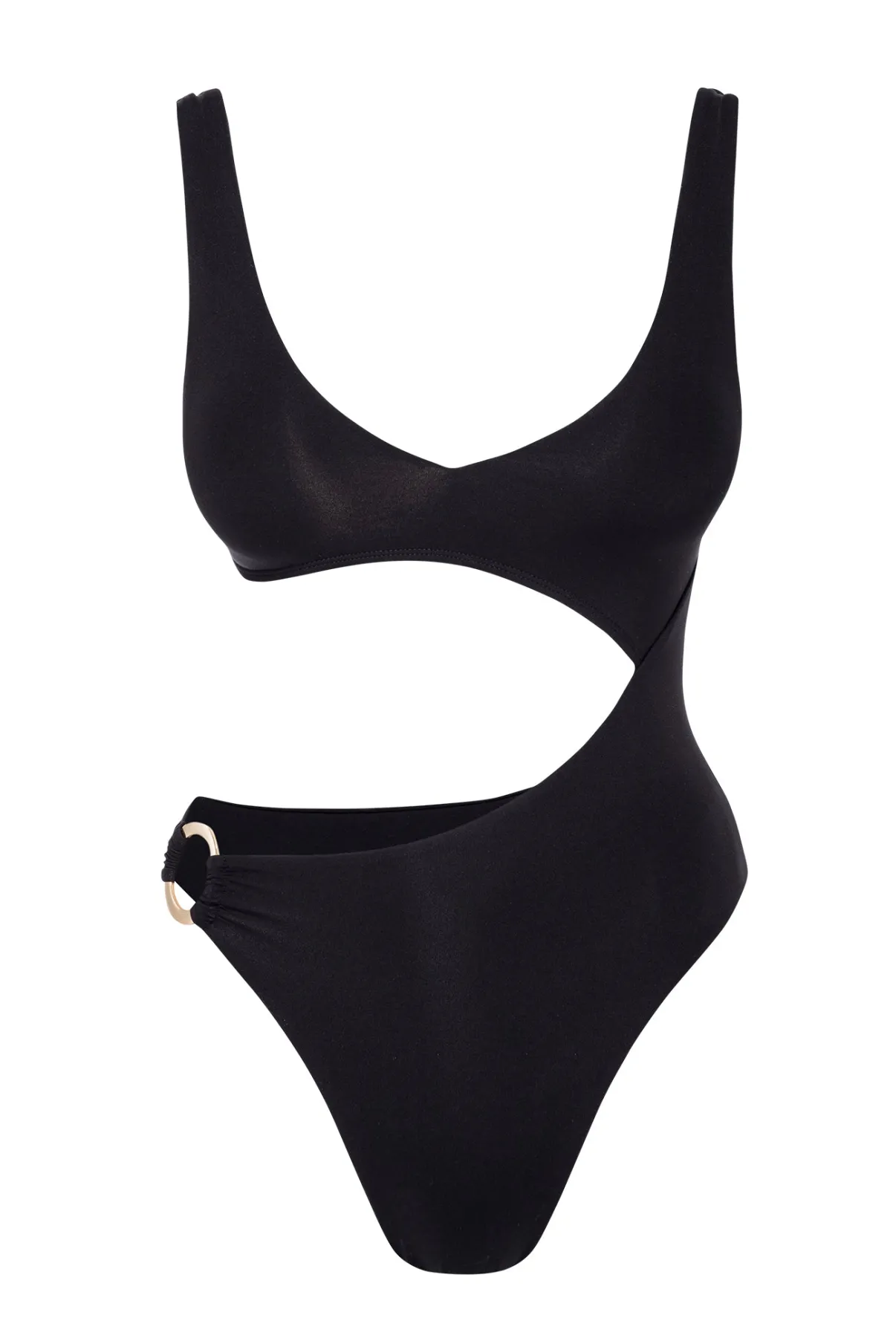 We can’t take our eyes off the St. Barth’s One Piece. From the sultry cut-out detail to the flattering silhouette, this must-have one piece is made to show off your figure. Complete with a rounded v-neckline, adjustable back tie closure and a gold ring detail. All eyes on you!