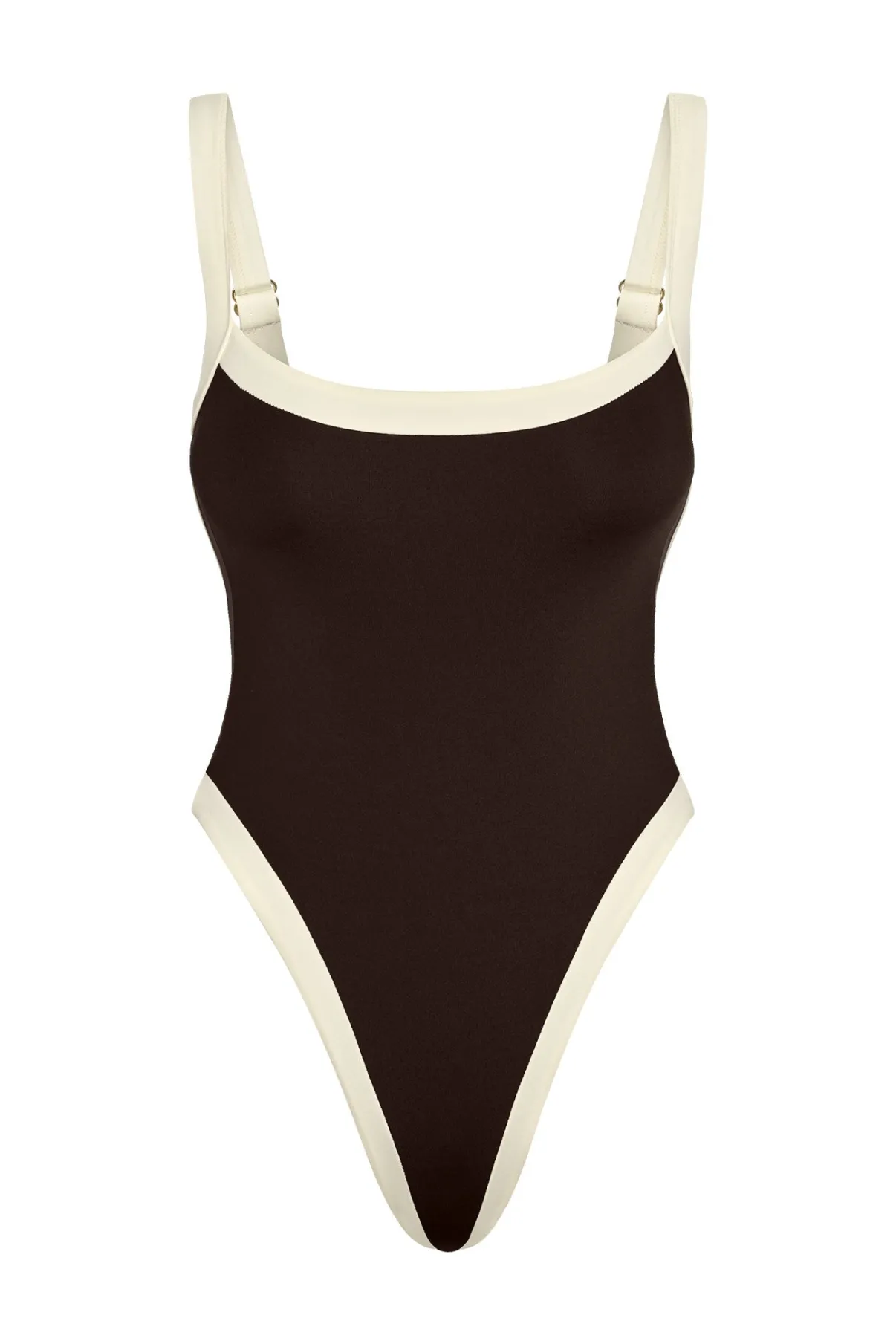 The Barcelona One Piece delivers a refined take on a classic silhouette. With adjustable shoulder straps, a built-in shelf bra, and a low back, it’s designed to flatter with ease. Finished with a high-leg cut and cheeky coverage, this two-tone classic was made to flatter from every angle.