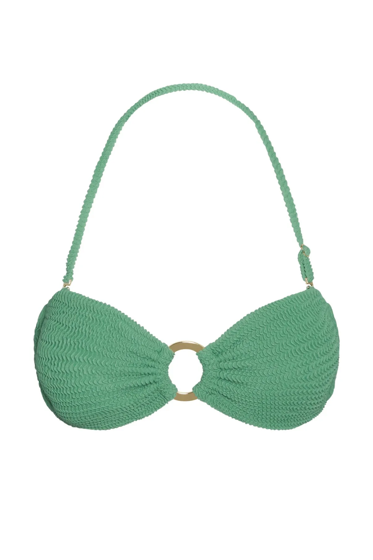 Soak in the sun while wearing the Costa Rica Top. This bandeau style top features a center front gold ring hardware and a removable halter strap that can be adjusted for the perfect amount of lift and support for all your beach adventures. Perfect for cup sizes A-D! Our super supportive and flattering crinkle fabric is fully lined and tailored to make you look and feel your best.