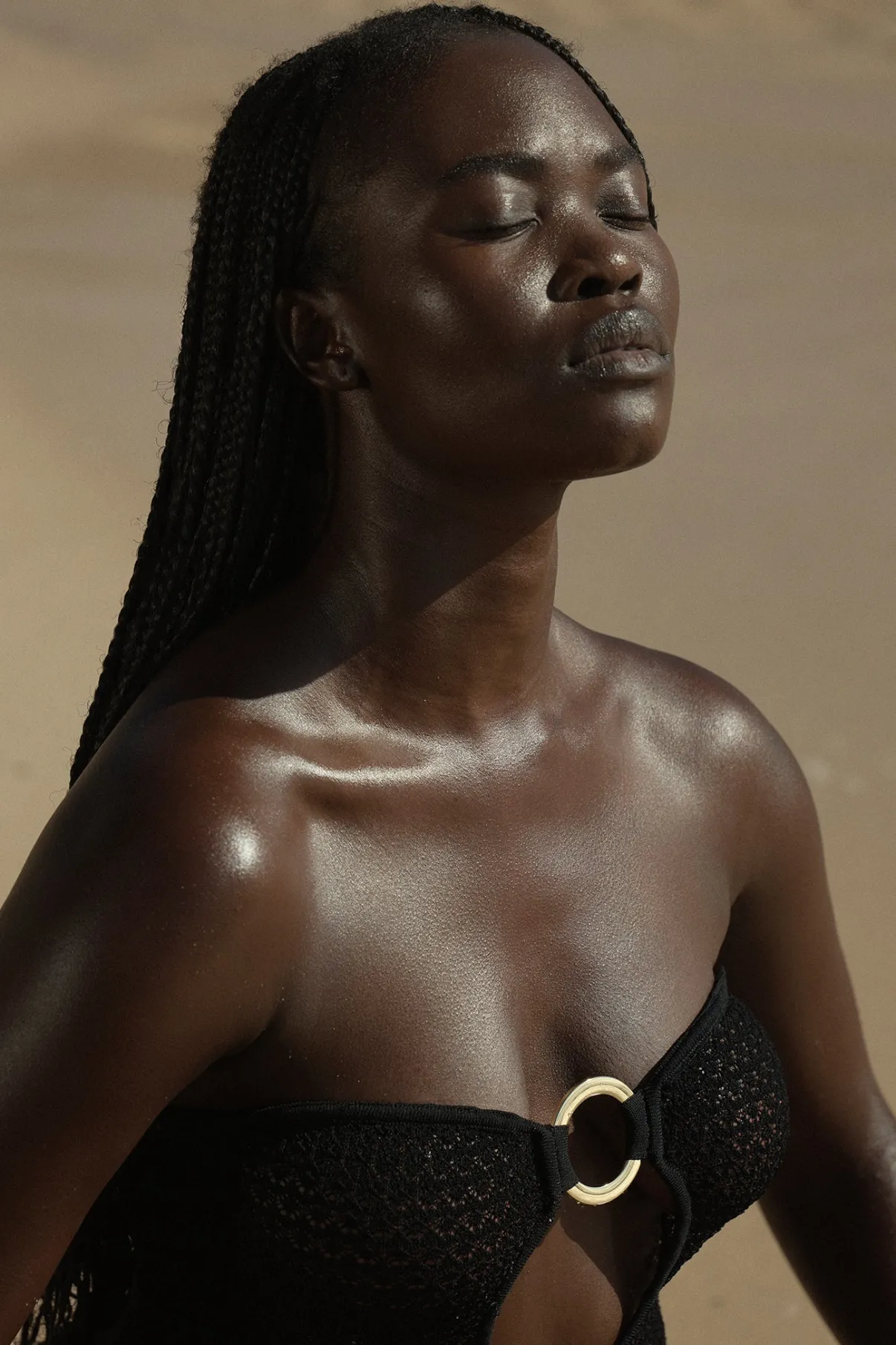 Turn heads in the Montego Bandeau Dress, featuring a plunging front keyhole for a flawless fit and a gold hardware ring for a touch of luxury. Side seam slits and an ankle-grazing, semi-sheer design tease just the right amount of skin for sunlit days and moonlit nights. Finished with an adjustable back tie, this piece is elegance redefined.