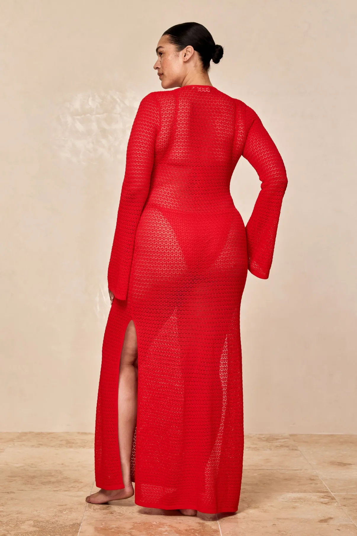 Glamorous and chic! This Montego Dress will make you feel like a star. Made in a lurex crochet knit, this elegant dress with a plunging neckline, gold ring detailing and high side seam slits will make you brighten up any room you walk in. Paired with any of our swim, this dress will elevate any beach look!