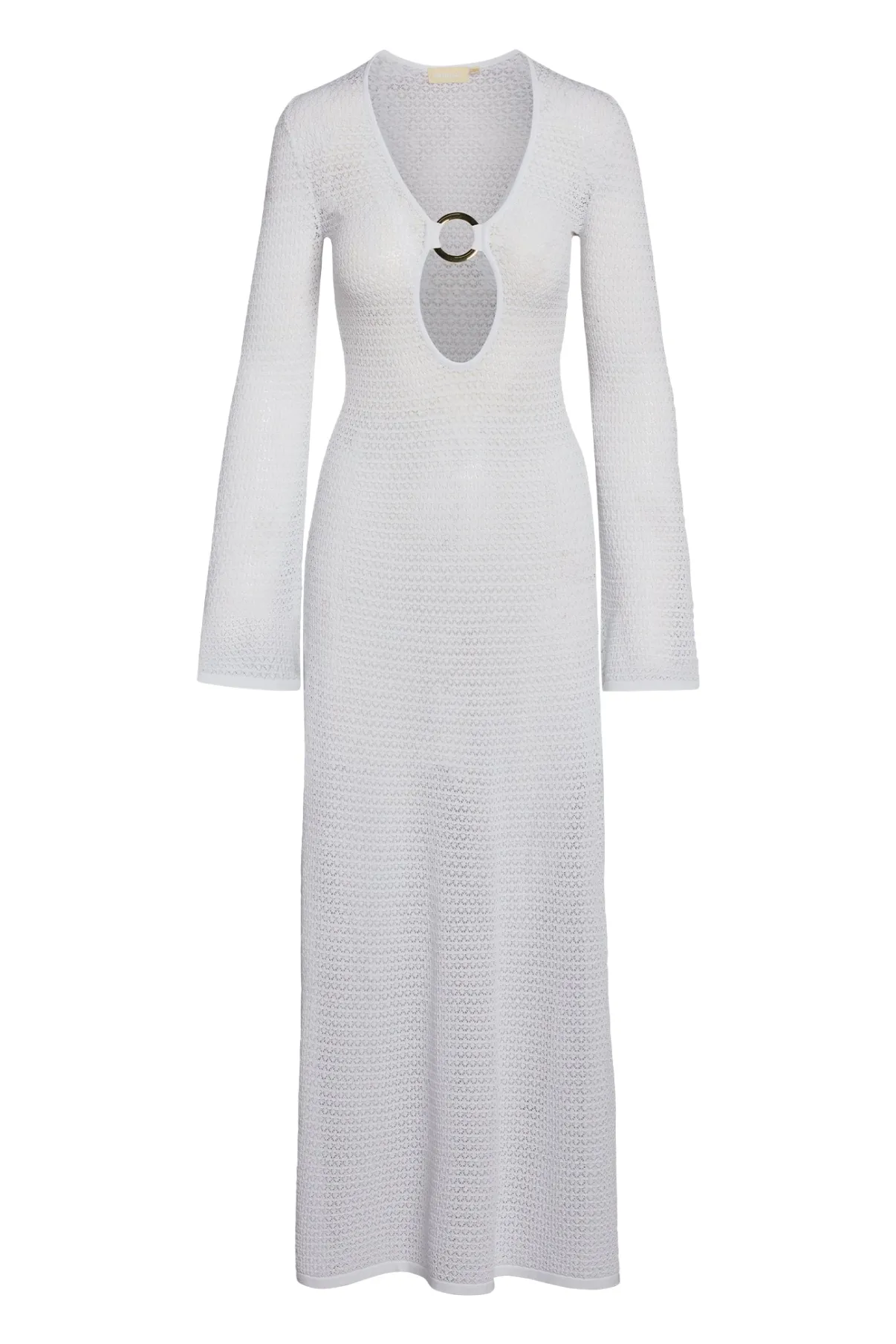 The Montego Dress in white is Tash’s exclusive wedding dress made to be a bridal showstopper. Designed in a luxe crochet knit, this stunning dress features a plunging neckline, ring detailing and high side seam slits will make you brighten up any room you walk in. Paired with our true white swimsuits for a seamless look.
