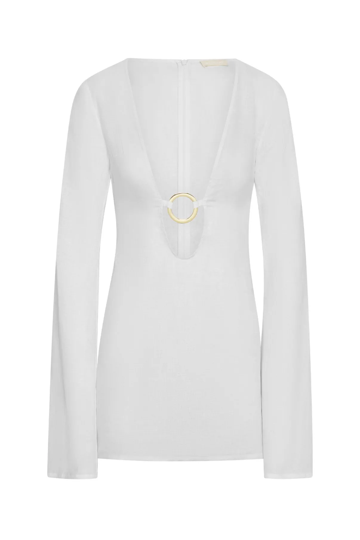Plunging neckline w/ center front gold ring detail
