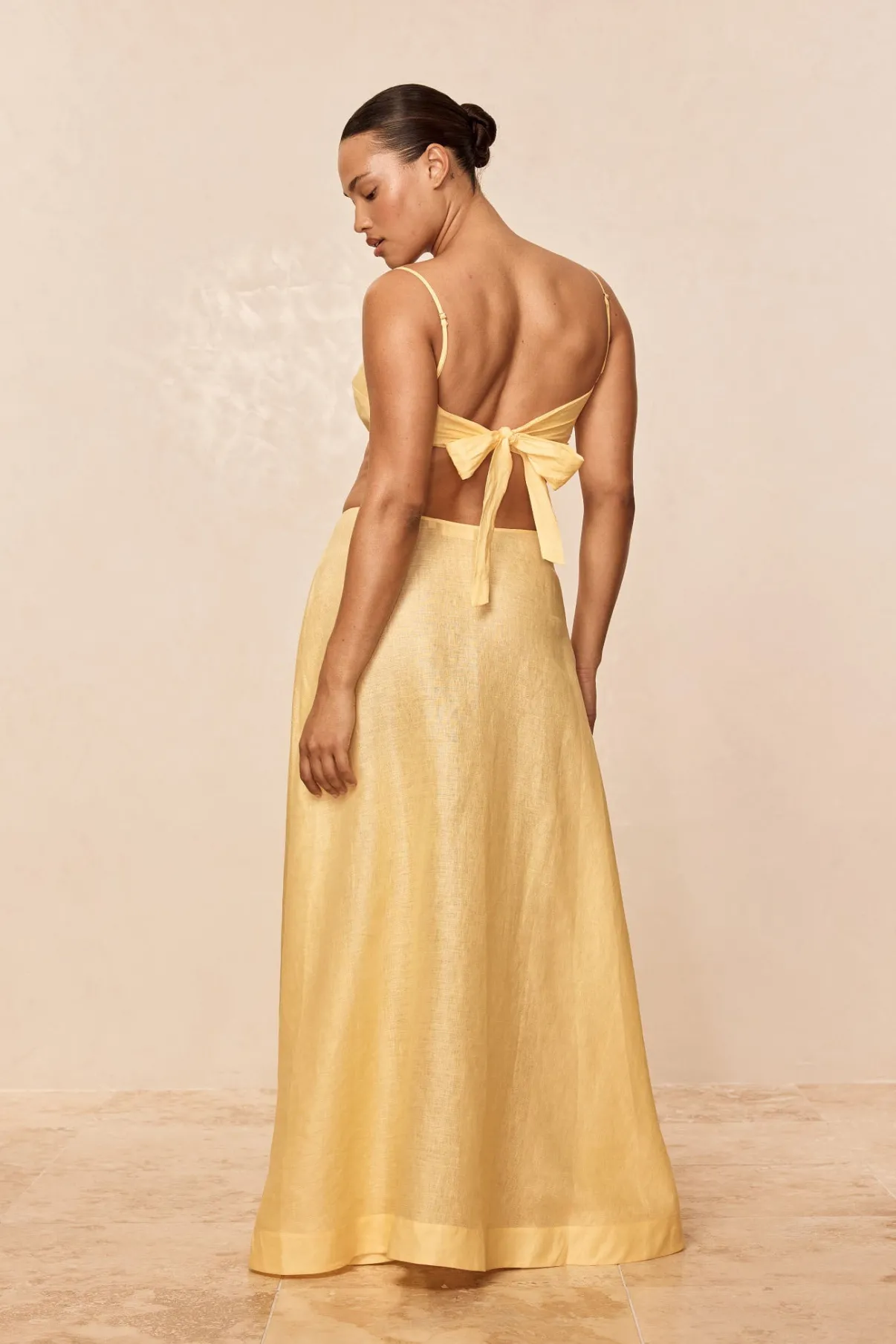 We designed the San Diego Top to be a wardrobe essential through the warmer months ahead. Made to effortlessly pair with countless options, this cropped linen tank is complete with adjustable shoulder straps and a back tie closure. Complete this chic look with the Belize Pant or the Fontelina Skirt.